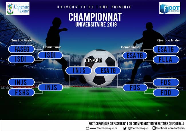 Dans moins de 72 heures, les rideaux tomberont sur l’édition 2019 des Championnats Universitaires. La grande finale du tournoi de football mettra aux prises l’INJS à l’ESA-TOGO. Cette affiche alléchante, dans une moindre mesure surprenante est programmée sur ce vendredi 03 mai sur le Terrain Rouge de l’Université de Lomé.
