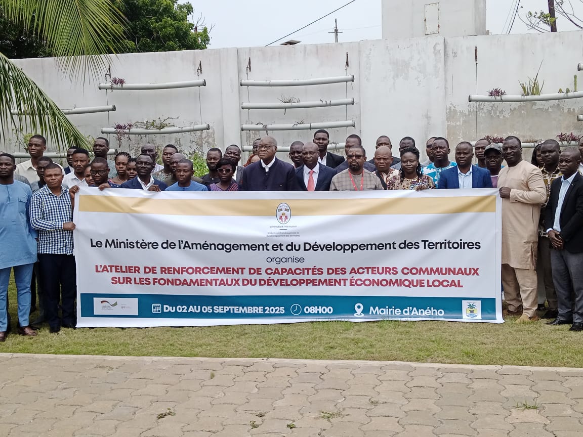 Organisé par le ministère de l’Aménagement et du développement des territoires (MADT) en collaboration avec l’Agence Nationale de Formation des Collectivités Territoriales (ANFCT) avec l’appui technique et financier de la Coopération allemande à travers le Programme décentralisation et gouvernance (ProDeG IV), mandaté par le ministère fédéral allemand de la coopération économique et du développement (BMZ) et mis en œuvre au Togo par la GIZ, l’atelier de renforcement de capacités des acteurs communaux sur les fondamentaux du Développement Économique Local (DEL), mobilise du 02 au 05 septembre 2025 à Aného, soixante-dix-sept (77) participants, en particulier, des représentants des communes partenaires du ProDeG IV, des cadres du MADT et d’autres ministères, des opérateurs économiques locaux, ainsi que des conseillers techniques du ProDeG IV.